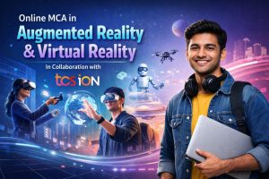 An Online MCA in Augmented Reality & Virtual Reality (in collaboration with TCS iON) equips students with skills in AR/VR development, 3D design, and immersive technologies, preparing them for careers in gaming, simulation, and tech innovation with flexible online learning.