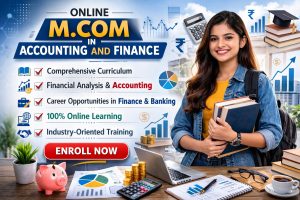 An Online M.Com in Accounting and Finance builds expertise in financial management, accounting principles, and financial reporting, preparing students for careers in finance, auditing, and accounting with flexible online learning.
