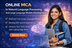 An Online MCA in Natural Language Processing & Large Language Models Development builds expertise in NLP, AI, and advanced language technologies, preparing students for careers in AI development, chatbots, and intelligent systems with flexible online learning.